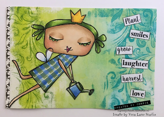 I coloured this little girl by Vera Lane Studio when I was on holiday and decided to use her today. The sentiment is from the same set.