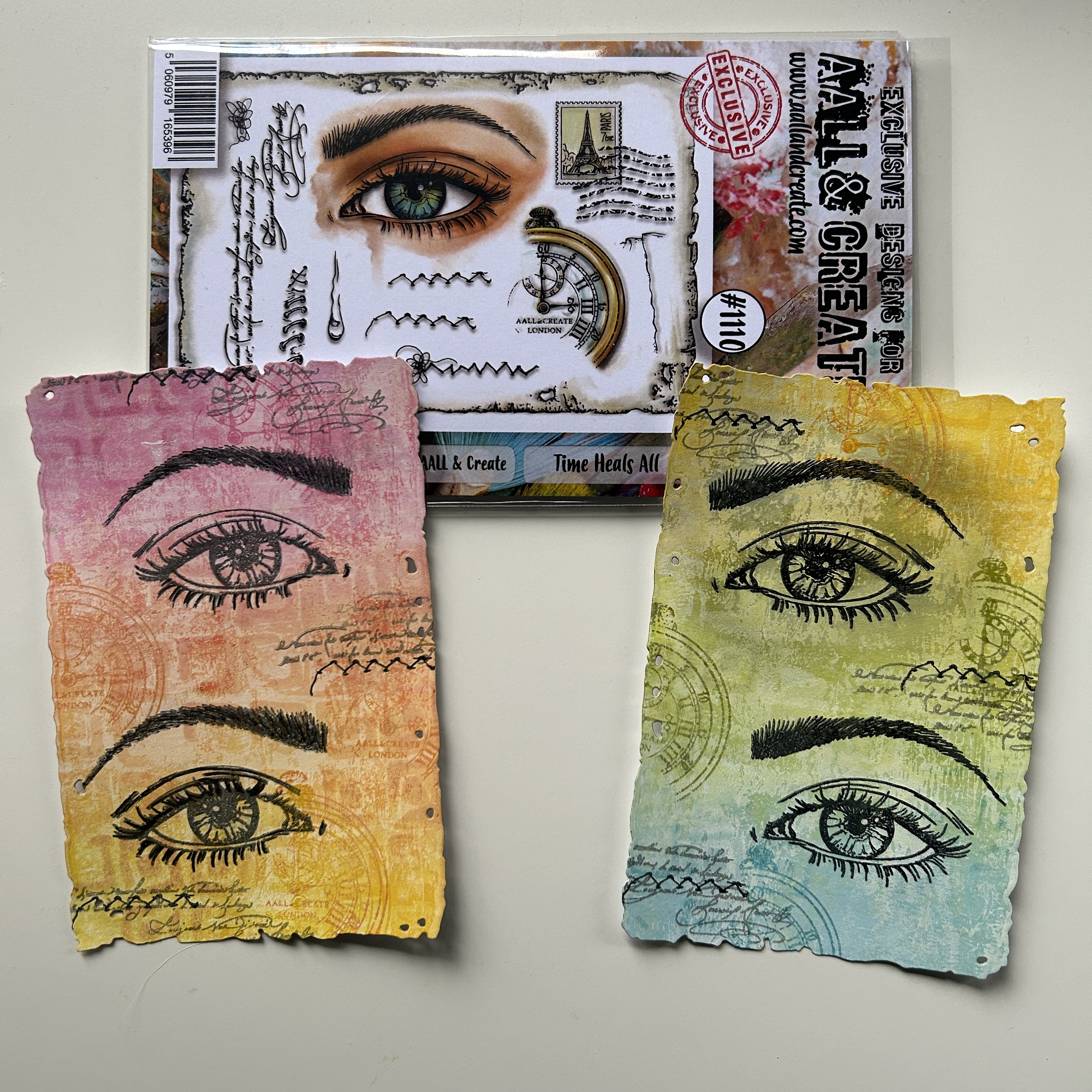 Next I stated the eyes on the cards. I used a gelli plate to reverse the image. The print of the one via the gelli plate is always lighter and not quite so sharp but on the whole it's a good way of doing this.
